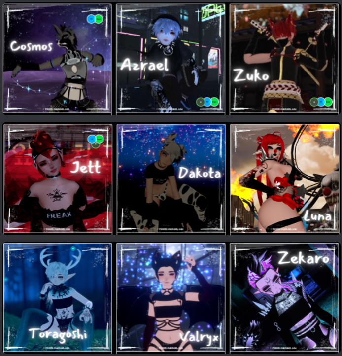 (my avatars, free avis, or ones we both own - proof of purchase is required)